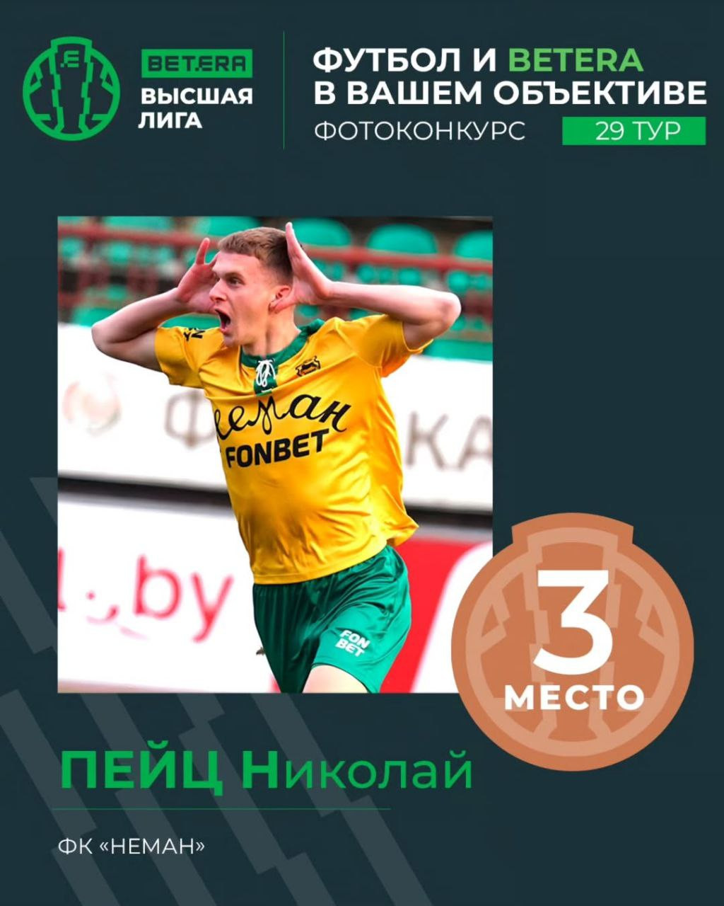 Предлагаем вашему вниманию тройку лучших фоторабот очередного этапа конкурса «Футбол и BETERA в вашем объективе»:
