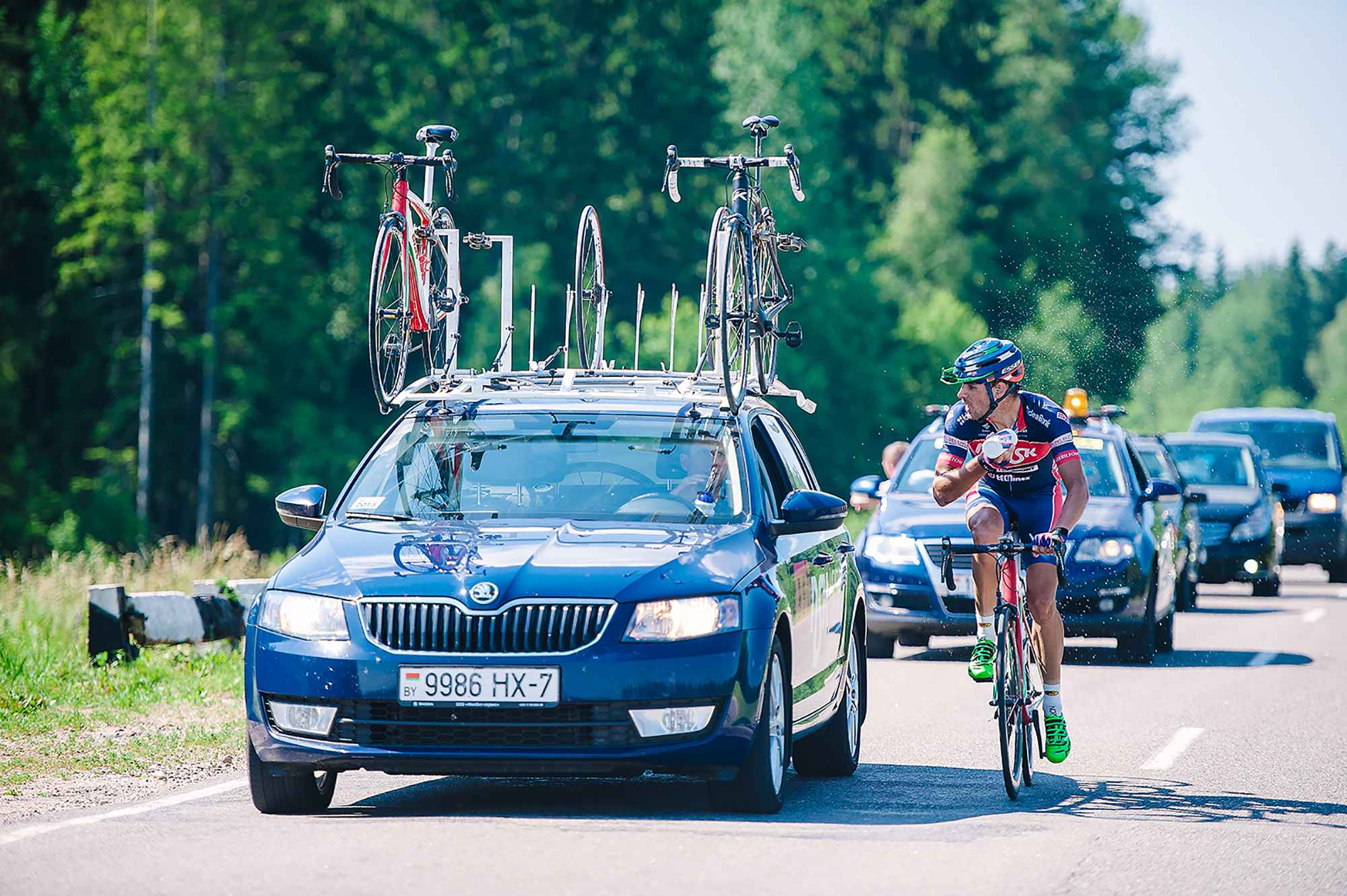 Гонщик континентальной команды UCI "Minsk Cycling Club" Станислав Божков в отрыве на международной шоссейной велогонке «кубок Минска-2016».