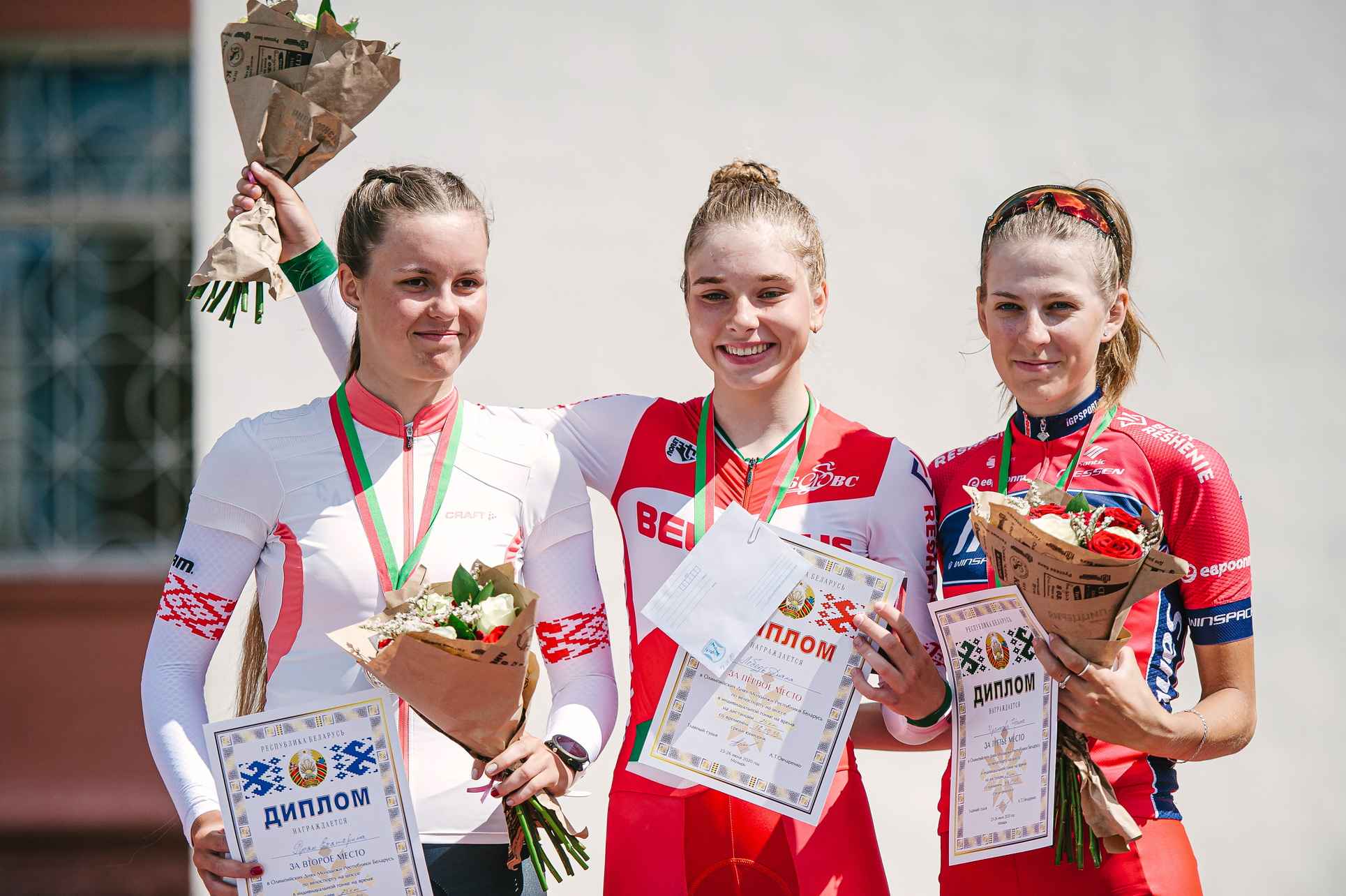 Призовая тройка первенства Беларуси в индивидуальной гонке среди юниорок.
